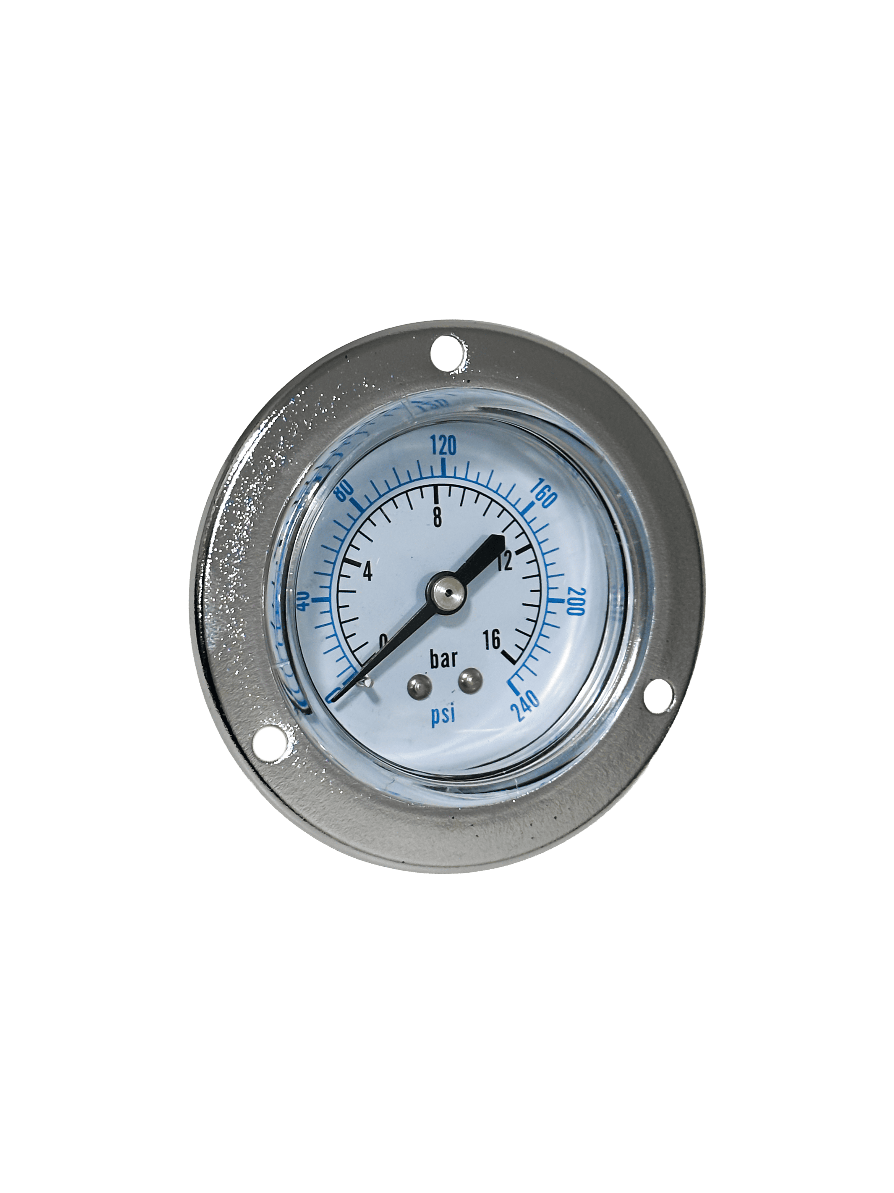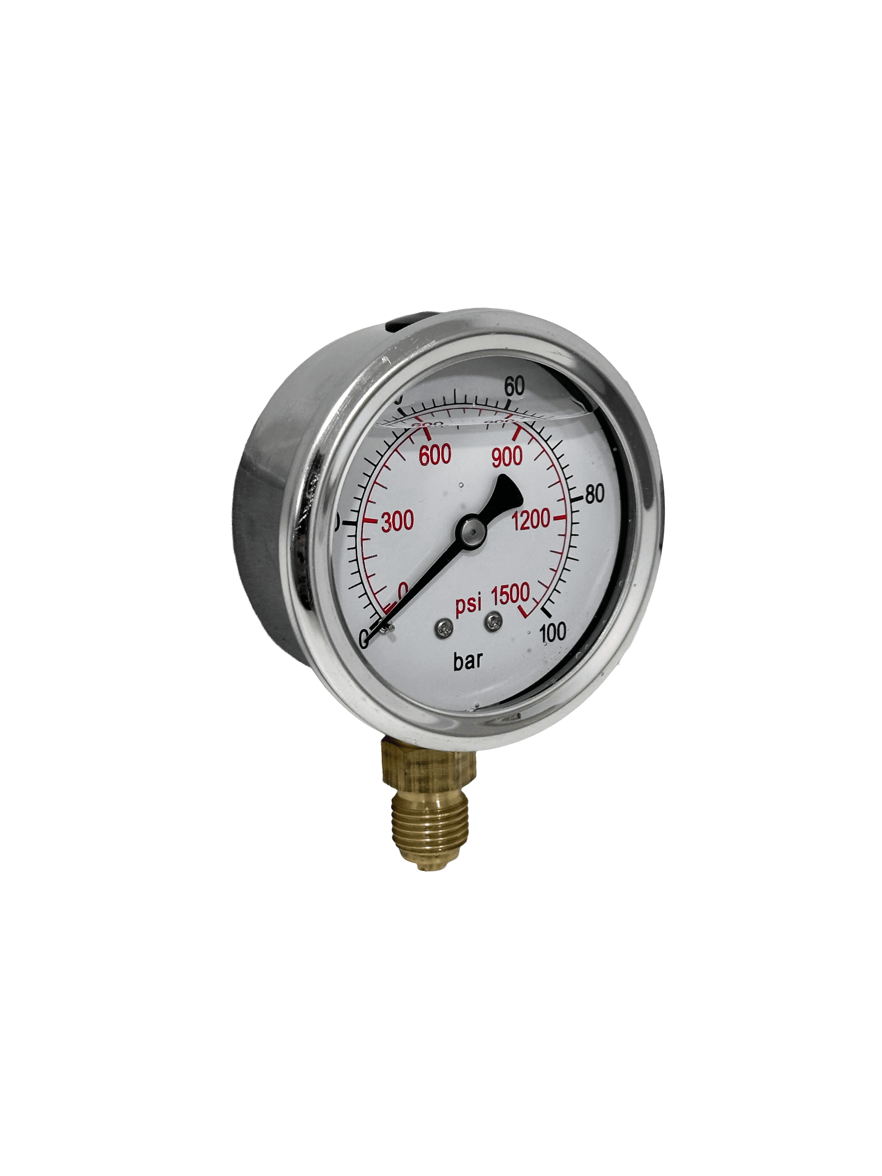 MANOMETRO 63MM CAIXA INOX, INTERNO LATÃO, C/ GLICERINA, 1/4" VERTICAL. 0-100 BAR